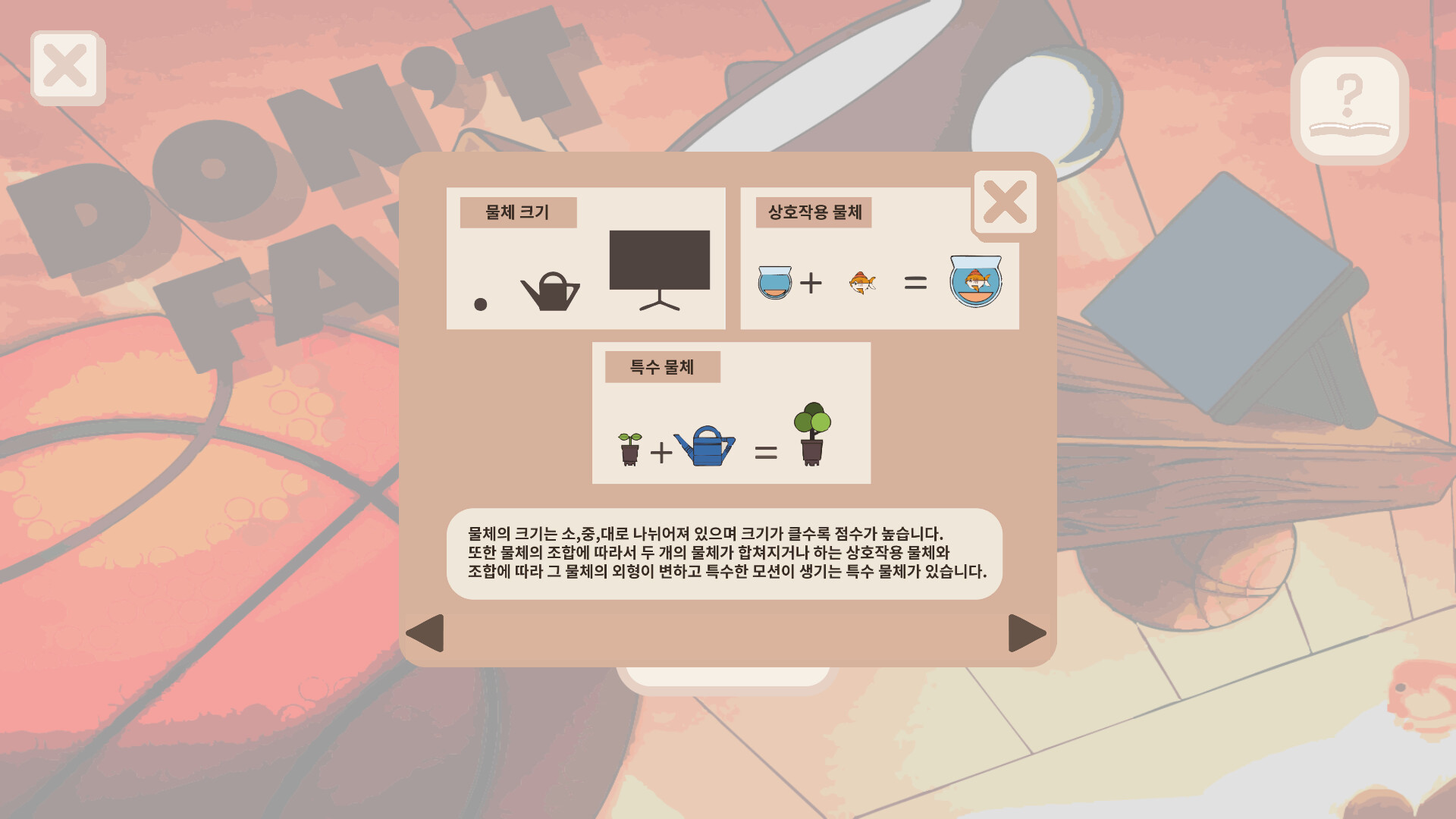 Don't Fall is a fast-paced strategy and simulation game where you place objects of various sizes on a wooden shelf and fight against gravity. Your goal? Don’t let anything fall. With each object added, balance becomes harder to maintain — and time is always ticking.